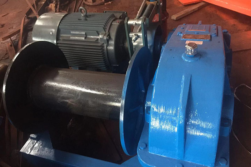 卷揚機由電動機、聯(lián)軸器、制動器、減速機和繩筒等組成,共同安裝在底盤上。由電源驅(qū)動繩筒、卷繞繩索來實現(xiàn)牽引任務(wù)的裝置,能起到吊錘、吊樁、拉樁、拖樁、拔樁、加壓、移位等作用。
